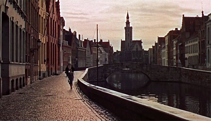 The film starts in Bruges, famous for its medieval centre that has largely been preserved. Gabrielle is standing on the bridge between the Spinolarei and the Spiegelrei near the Koningstraat. During the opening credits she walks on the Spinolarei along the canal. In the background the tower of the Poortersloge at the Jan van Eyckplein is visible. In the years that have passed little has changed, although the present photos show that there are often restorations and renovations going on.
